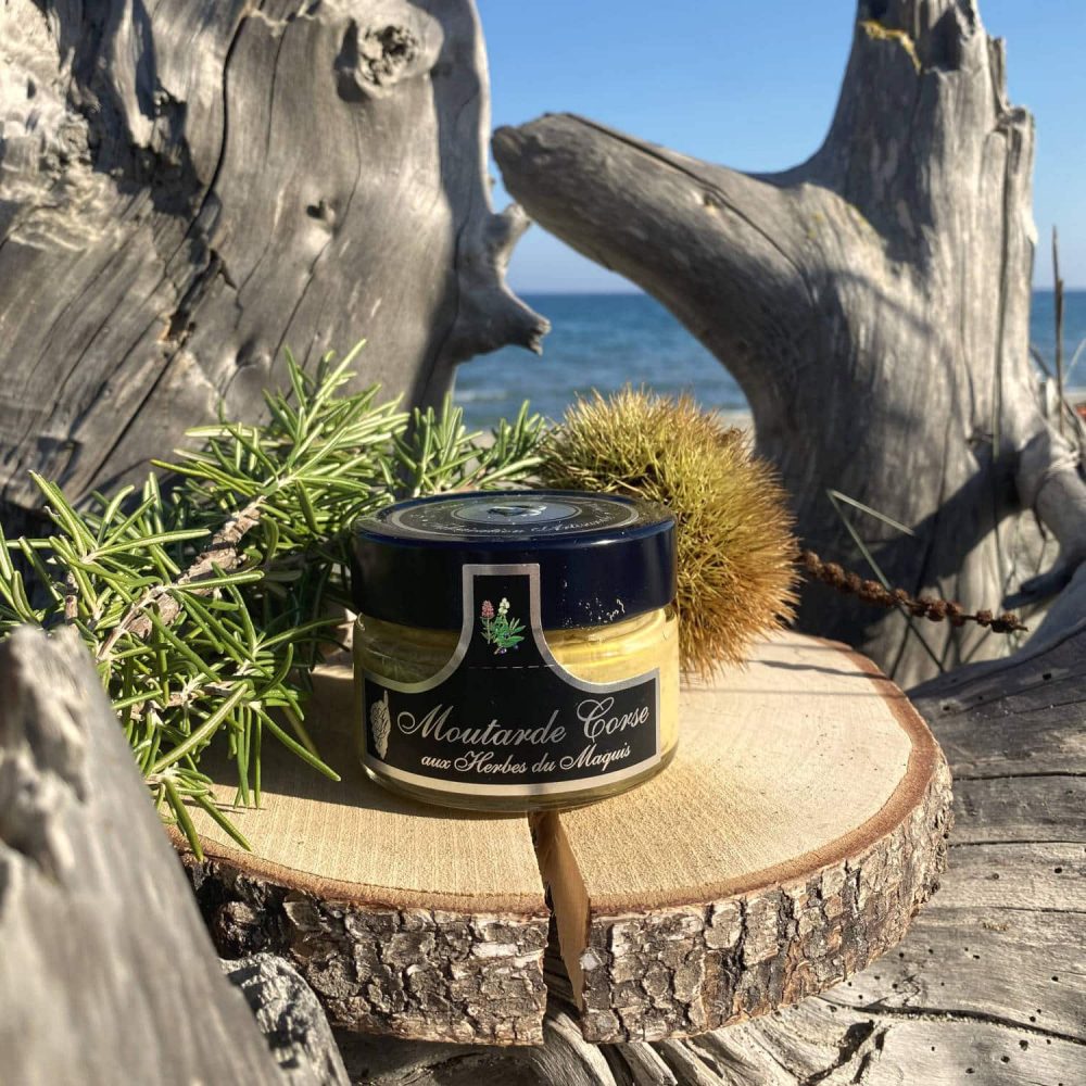 Moutarde artisanale Corse à base d’herbes du maquis de l’Atelier de la Moutarde Corse.